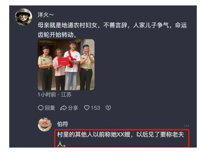 面对火箭军工程,大学的领导亲自把录取通知书送到儿子手上,作为母亲,他为儿子感到非常骄傲,他看向领导和儿子的眼神里,颇有深意。