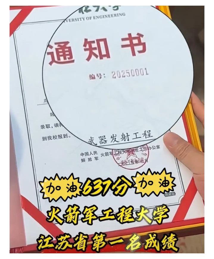 最近,江苏有一位考生,成功被火箭军大学录取,这本就是一件值得庆贺的大喜事。